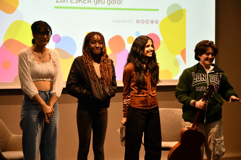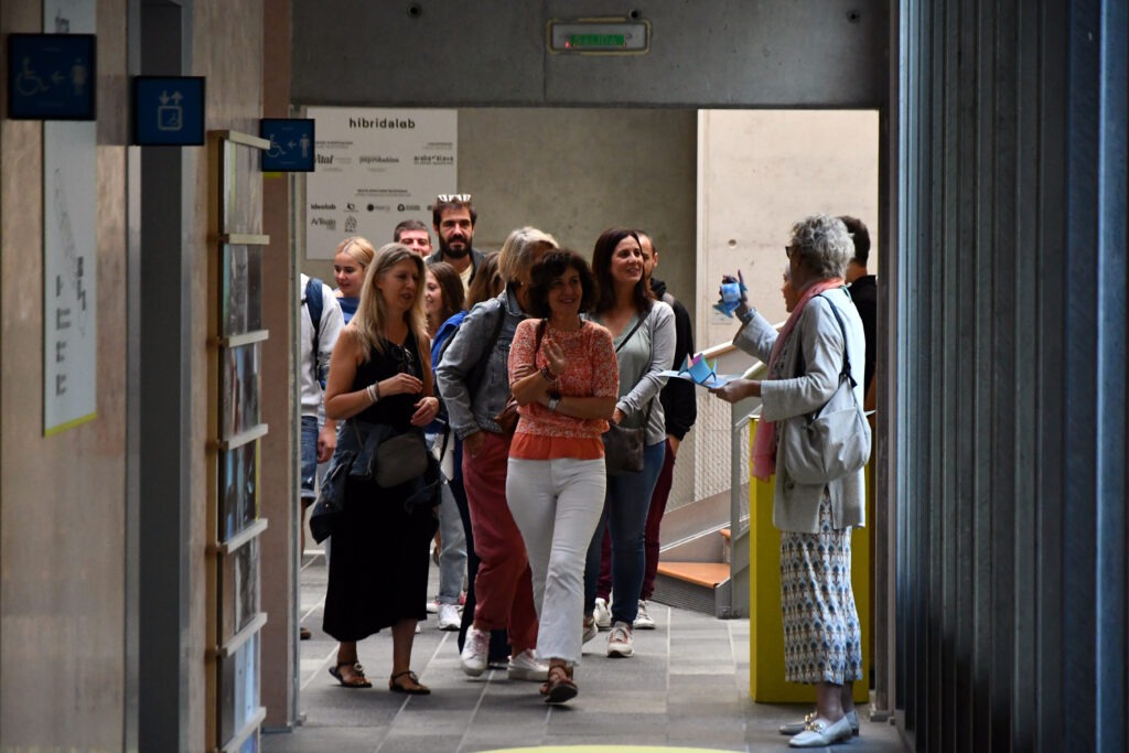 Y, por último, agradecer también «la escapada» de Nerea Melgosa, consejera de Igualdad, Justicia y Políticas Sociales del Gobierno Vasco, que ha podido encontrar un hueco en su apretada agenda, acercarse hasta un espacio como el de hibridalab, «…que posibilita la hibridación y la cooperación, … para impulsar proyectos de innovación…», y ofrecernos un tiempo de encuentro informal muy gratificante, tanto por las jóvenes que han participado en la jornada como por los y las educadoras asistentes.