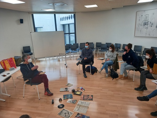La exposición, se ha complementado con una programación paralela de distintos talleres dirigidos tanto a educadoras de IRSEARABA como a jóvenes de la zona de Zabalgana. Por una parte, Jon Etxeberrria, coordinador de una de las entidades impulsoras de MugaZabaldu (Nuevo Futuro de Navarra), ha presentado a Equipos Educativos del Programa Municipal de Educación de Calle de Vitoria-Gasteiz, distintas formas y experiencias de trabajo con los conceptos de inmigración, derecho, y en especial, un acercamiento al concepto frontera. Este término no se entiende solo como una barrera geográfica y jurídica, sino como toda dificultad que impide poder materializar todo derecho vinculado con la infancia y juventud. Se pone en valor la figura socioeducativa de los y las educadoras de calle como acompañantes en el proceso de cruzar barreras/fronteras, figuras profesionales que facilitan y garantizan el desarrollo de la población joven a nivel cultural y en sus procesos de participación social.